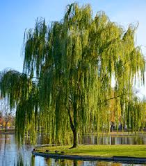 the tree is reaching for the sky like a skyscraper. The weeping willow has a